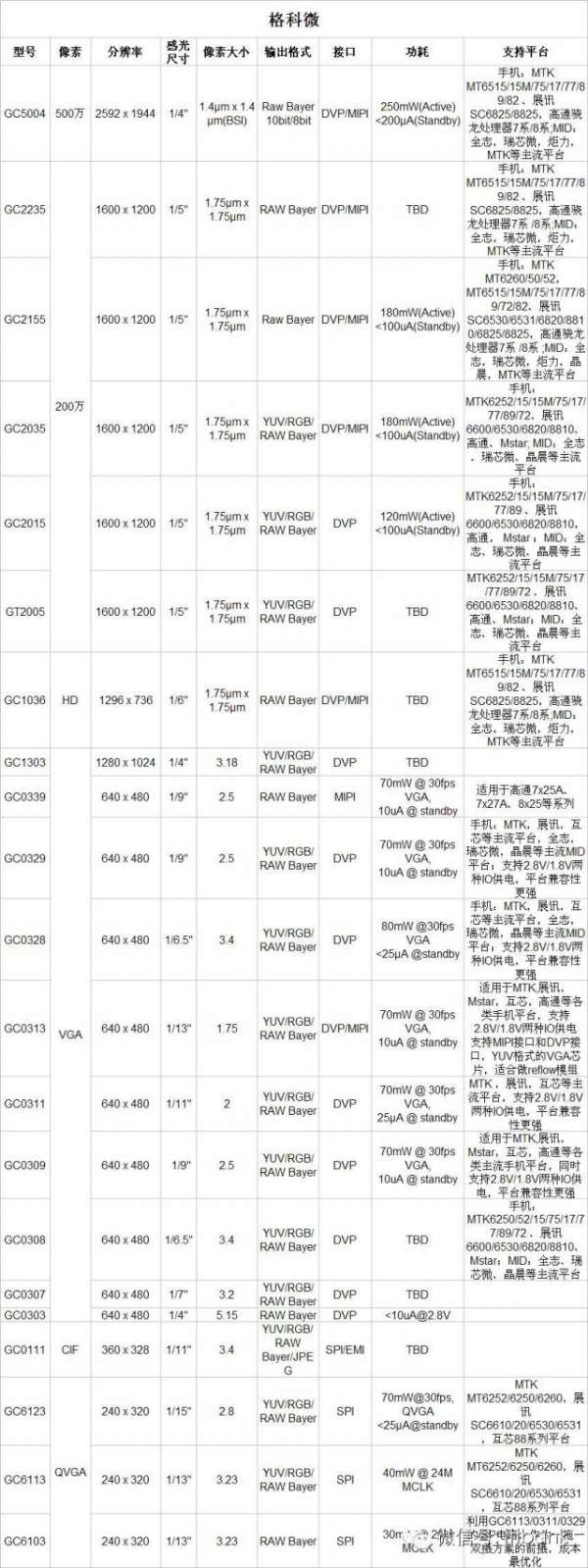 网讯:格科微思比科都是芯片界的佼佼者,让我们来看看他们各自型号的芯片参数吧。