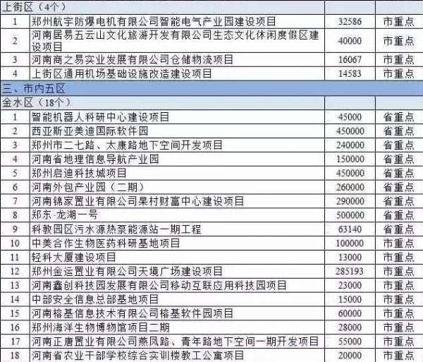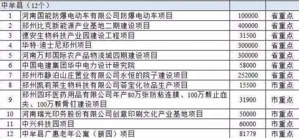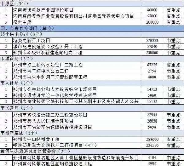 中原区3个,包括河南安德科技产业园建设项目、河南康泰养老产业发展股份有限公司康泰国际养老中心项目、盛世中原等。