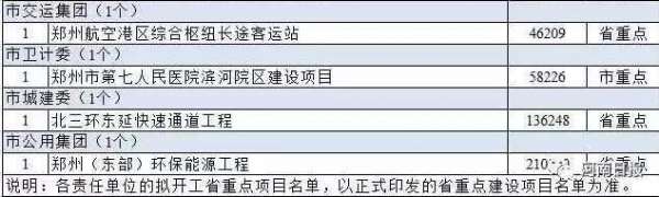 市直有关部门负责的拟开工重点项目,郑州市本级95条新建道路电力工程、郑州市陈三桥污水处理厂二期工程、郑州市公共就业和人才服务综合市场项目、郑州市殡仪馆迁建二期工程建设项目、郑州市第八人民医院迁建项目、郑州市牛口峪引黄工程、畅通郑州重大交通拟开工打捆项目(4个)、郑州航空港区综合枢纽长途客运站、郑州市第七人民医院滨河院区建设项目、北三环东延快速通道工程均在列。