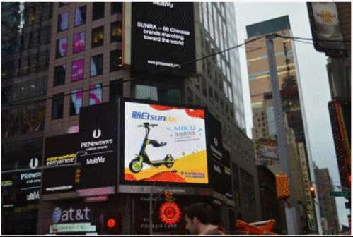 建设“一带一路”,以国际产能合作为抓手,推动世界更加均衡、更加包容、更加普惠地发展。新日电动车以“新日首款智能电动车——新日MIKU”代表着中国电动车行业亮相纽约时代广场,意义重大。