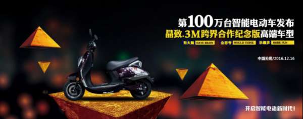 股份有限公司与以科技创新著称的多元化企业3M在无锡签署战略合作协议。在本次签约仪式上,新日电动车同时联合3M公司发布了具有里程碑意义的第100万台智能电动车——新日晶致跨界合作纪念版,第100万台智能电动车的发布标志着新日电动车智能化战略取得阶段性成功,并进入崭新的阶段。新日将继续深化电动车智能化的研发,让更多用户享受到智能电动车带来的便利。