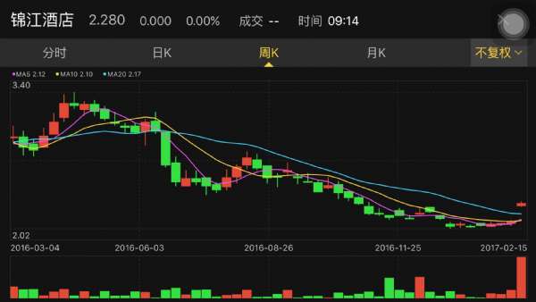 总的说来作为中国酒店行业的龙头企业,锦江酒店基本面良好,其目前股价处于近两年来低点,2月15日收盘报2.28港元。从技术图形上看,其股价已进入上升通道。