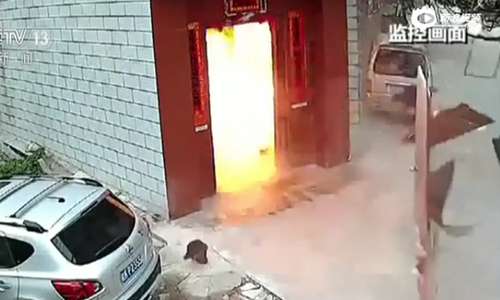 惊悚一幕!液化气黑作坊爆炸:门板被炸飞 着火男子逃出