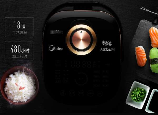 美的真空变压IH电饭煲将可变压力技术应用于电饭煲属于业内首创,并与多段IH技术、真空鼎釜一起形成该产品的三大核心技术。