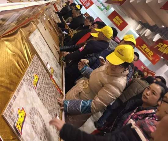 11月26日,马可波罗工厂空降年度收官大促在南京板桥弘阳会展中心三楼圆满举办。虽然天空飘着小雨,来看瓷砖的客户依然源源不断,活动现场人头攒动,客户络绎不绝!在2016年度收官大促这场粉丝盛宴中又创造了骄人战绩。
