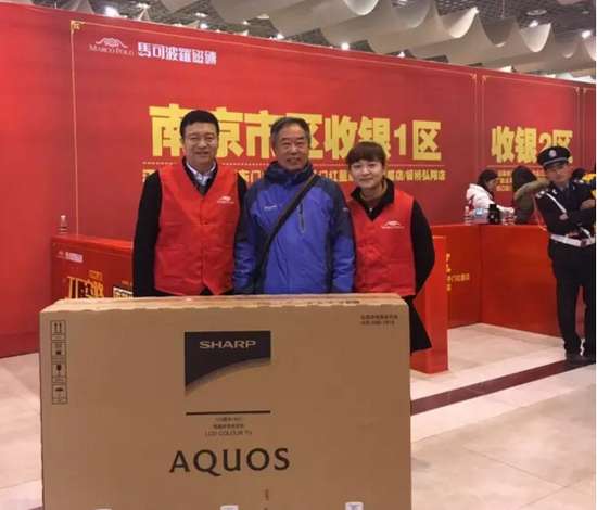中午12点,抽奖活动正式开始,在现场消费者的见证下,工作人员邀请一名消费者抽取奖项。现场气氛随着大奖开启,变得紧张而又热烈,来自金陵国际家居店面客户的王先生和禄口翠屏城的张先生获得了55寸夏普液晶电视大奖。