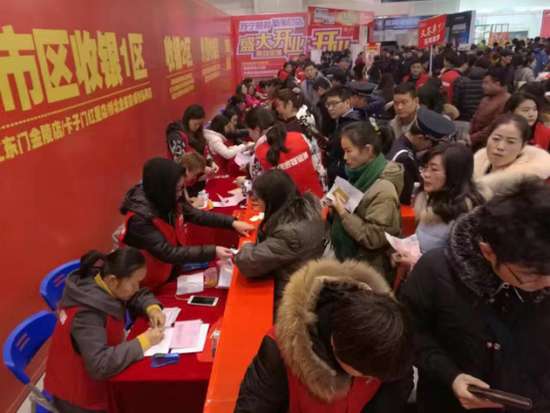 板桥弘阳装饰城春上西江售楼中心三楼,来自江苏南京、泰州、镇江、淮安、高淳……全省各地区业主齐聚南京,参加本次马可波罗瓷砖工厂空降再度来袭活动。本次活动为感谢广大业主的支持,推出多种促销优惠,吸引了众多业主前来,现场人头攒动,十分火爆,没等开场,会议中心楼下就已经排起了长队。