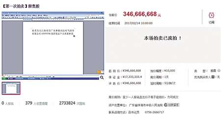 吴长江所持1.3亿股A股流拍 网页截图