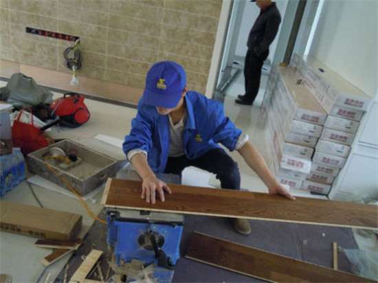 相比较于普通的地板,尤其是瓷砖来说,强化地板的施工时间非常短,一般半天搞定,最多需要一天。圣象强化地板的师傅告诉我们,安装强化地板不需要做复杂前期地面处理和相关的配套工程,而且可以单独的更换地板,避免了很多麻烦。