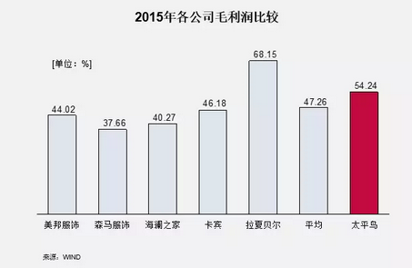 等,太平鸟毛利润率为54.24%,仅次于拉夏贝尔,位列同行业第二的水平。