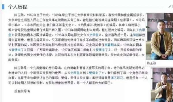 导演的百度百科介绍,已经被悄然加上了“反服贸导演”的标签