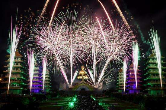 这是1月28日拍摄的佛光山大型烟火表演。新华社记者 欧东衢 摄