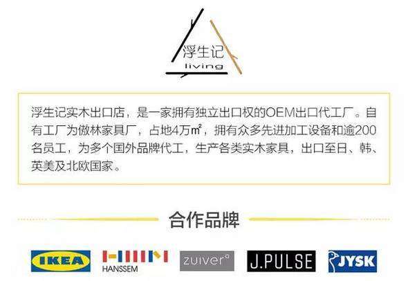 而位于山东青岛的这家宜家海外代工厂,却很少有人知道他的底细。作为宜家在国内的主要合作厂商,浮生记的家具直接出口丹麦,主营包括白橡木、黑胡桃材质在内的各种北欧经典款,所有生产线均采用高标准现代化设备,从拼板,喷漆到涂装,严格执行欧洲环保标准。看看这些码得齐整,等待出口的平板包装货品,你就知道这个厂家的实力。浮生记在极有家上也开设有淘宝店,知道的人不多,却长年维持着99.85%的好评率,号称只造优质木器。
