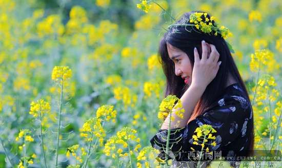 红豆美女网友在油菜花丛中留影。红豆社区网友鸬鹚\u00A0摄