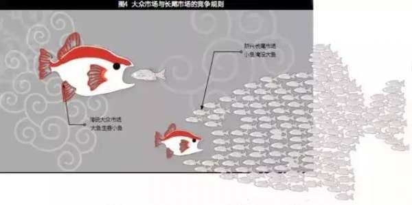 长尾市场正在崛起,小鱼将淹没大鱼。互联网、移动互联网给曾经没有地位的个性化长尾公平的机会、透明的信息、低交易成本,长尾无须与大企业再拼广告费用,或搞不阳光的关系。