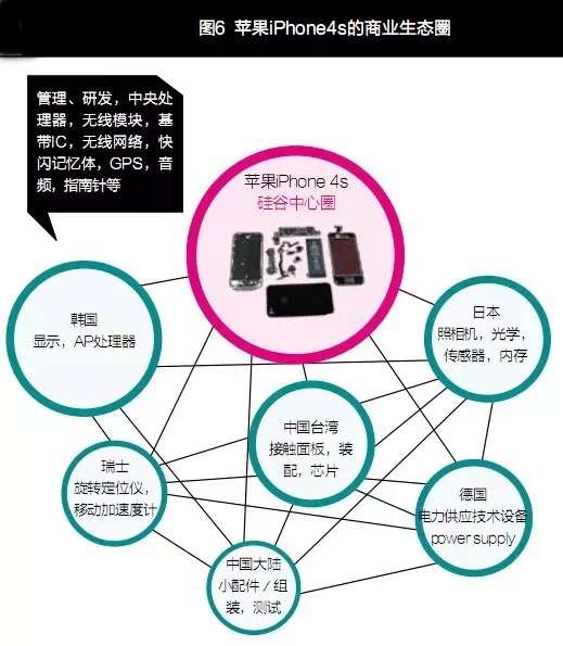 统一严格的标准:将不同任务发布到全球,用严格的标准,精挑细选出那些有相同价值观、有对客户和技术品质相同信仰、有人文关怀同理心的专业化企业,作为其生态成员。能进入苹果生态的企业,不是优秀的企业,而是卓越的企业。这个生态连接了多个国家的专业公司(见图6)。