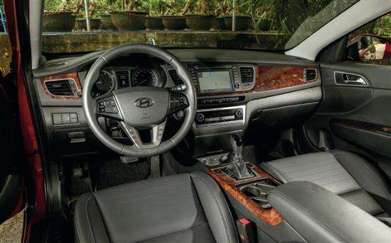 内饰采用上深下浅配色,是稳重与家庭味道的有机统一。仿桃木饰条的应用传达出稳重和大方的感觉。相比第八代索纳塔,中控台面板的设计更为中庸,空调控制按钮也没有那么前卫,好似一切都在为实用服务,简洁而大方。名图的方向盘采用三辐式镂空设计,握感较为舒适,还集成了多媒体控制、定速巡航、蓝牙电话等多项功能。