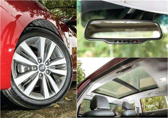 鉴于名图的定位,舒适性和安全性配置能给予驾驶者和乘坐的家庭人员极大的超值感受。名图沿袭了北京现代丰富配置的传统,除去ESP、ESS、侧气帘、侧气囊等必不可少的主被动安全设备,还安装了一键启动、氙气大灯、LED日间行车灯、座椅加热和通风等功能。中控台上大尺寸显示屏还集成了倒车影像和导航功能,让日常行车变得更为简单。在名图的车内后视镜上,还装有北京现代的Blue 车载信息处理系统的按钮,它能实现道路救援、信息查询、智能语音导航识别等功能,在车联网盛行的今日,不得不说是一项非常实用的高科技配置。