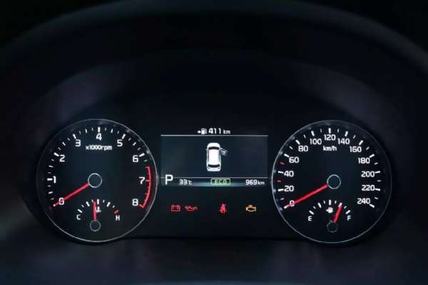 仪表盘继承了起亚传统的设计元素,简朴的双环造型,黑底白字红色指针,辅以中间彩色的行车电脑,视觉效果非常的清新舒适。