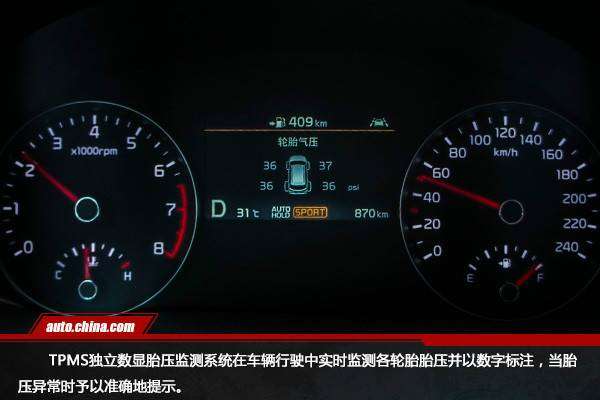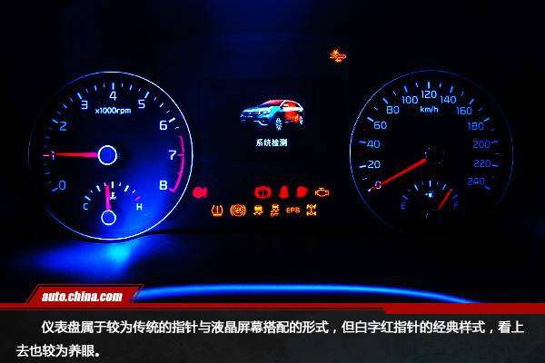 仪表盘属于较为传统的指针与液晶屏幕搭配的形式,但白字红指针的经典样式,看上去也较为养眼。