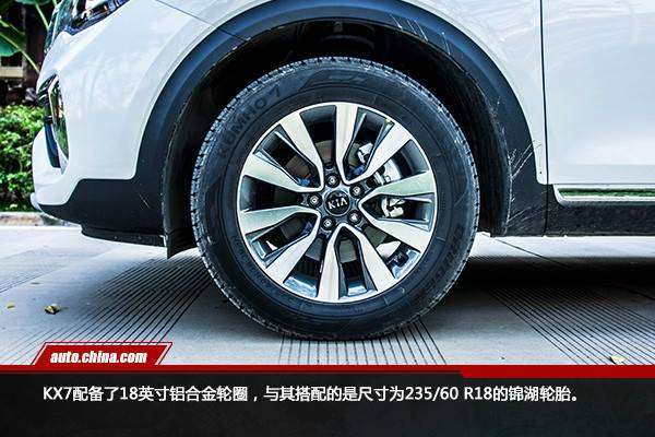 KX7配备了18英寸铝合金轮圈,与其搭配的是尺寸为235/60R18的锦湖轮胎。
