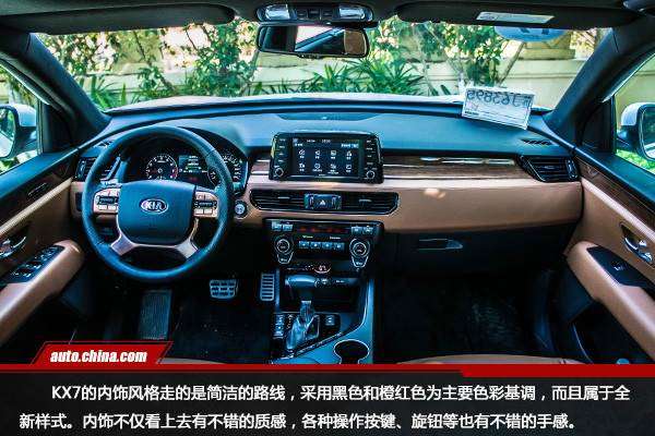 KX7的内饰风格走的是简洁的路线,采用黑色和橙红色为主要色彩基调,而且属于全新样式。内饰不仅看上去有不错的质感,各种操作按键、旋钮等也有不错的手感。