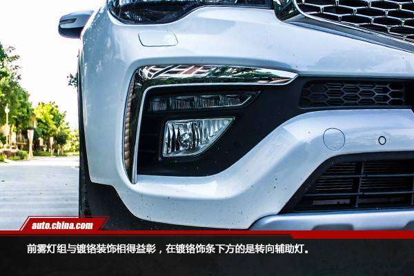 前雾灯组与镀铬装饰相得益彰,在镀铬饰条下方的是转向辅助灯。