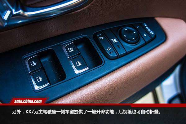 另外,KX7为主驾驶座一侧车窗提供了一键升降功能,后视镜也可自动折叠。
