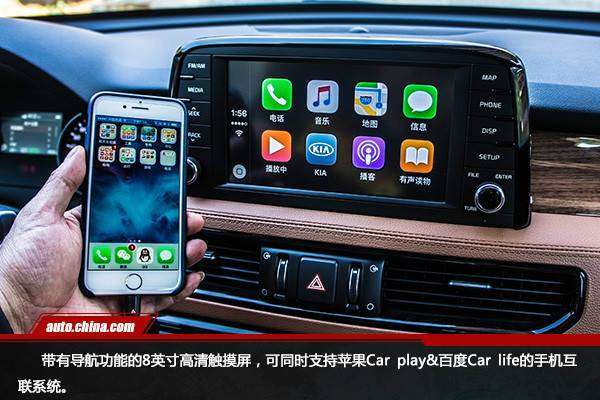 带有导航功能的8英寸高清触摸屏,可同时支持苹果Car play&百度Car life的手机互联系统。