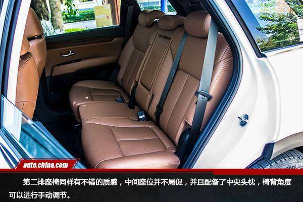 第二排座椅同样有不错的质感,中间座位并不局促,并且配备了中央头枕,椅背角度可以进行手动调节。