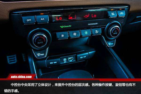 中控台中央采用了立体设计,来提升中控台的层次感。各种操作按键、旋钮等也有不错的手感。
