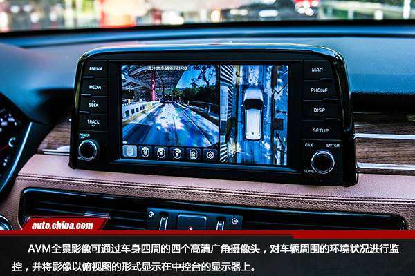 AVM全景影像可通过车身四周的四个高清广角摄像头,对车辆周围的环境状况进行监控,并将影像以俯视图的形式显示在中控台的显示器上。
