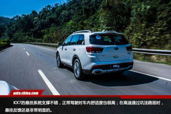 KX7的悬挂系统支撑不错,正常驾驶时车内舒适度也很高;在高速通过坑洼路面时,悬挂反馈还是非常明显的。