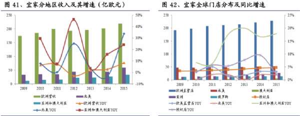 (1999-至今)全球供应链优化:随着宜家规模的扩大,企业供应链、内部管理问题制约企业成长。公司在持续进行大规模门店扩张的同时,加强从设计、生产到采购、物流等各环节的供应链优化、提升效率,宜家 2015年营业收入达到327亿欧元(2373 亿人民币)。