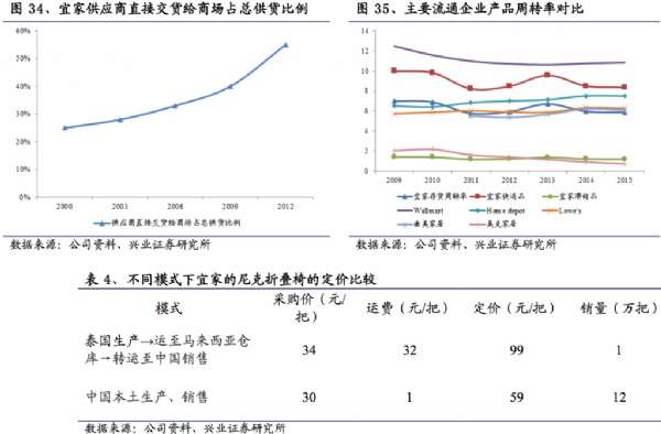 宜家创立的商业模式与当前行业既有的家居连锁市场没有本质区别,都属于大型独立店式的连锁零售。与一般家居企业不同,宜家深谙流通环节规模效应的准 则, 定位于全品类家居、仓储中心、连锁零售,致力于提供最具性价比的家居生活产品 , 而要保持这一竞争力则很大程度依托于公司强大的供应链效率。
