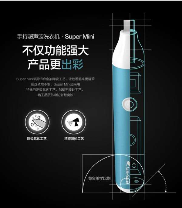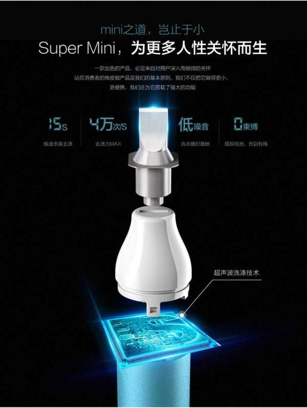 淘宝众筹上,小天鹅展出的一款便携超声洗涤器——Super Mini 超声波洗衣机,专注局部洗涤。