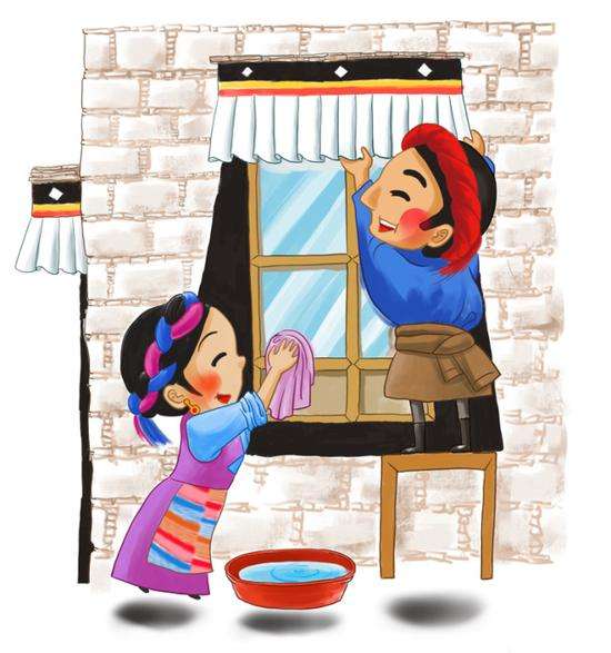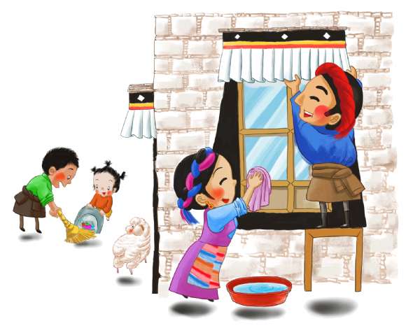 每年藏历12月底,家家户户都会择一吉日(根据藏历,并不是指定某一天,只要是年前的吉日即可),开始一年一度的“图恰”,将家中角落积了一年的灰渍和垃圾好好清扫,干干净净迎接“罗萨”(藏语音译,新年的意思)的到来。