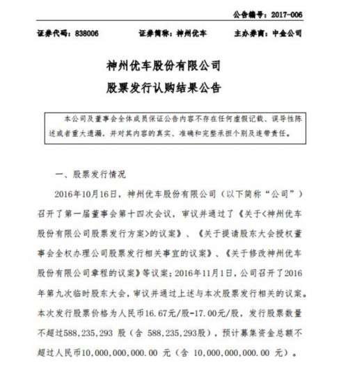 【环球科技报道 记者 李文瑶】2月28日晚间消息,神州专车母公司神州优车发布公告,宣布完成新一轮股票发行认购。