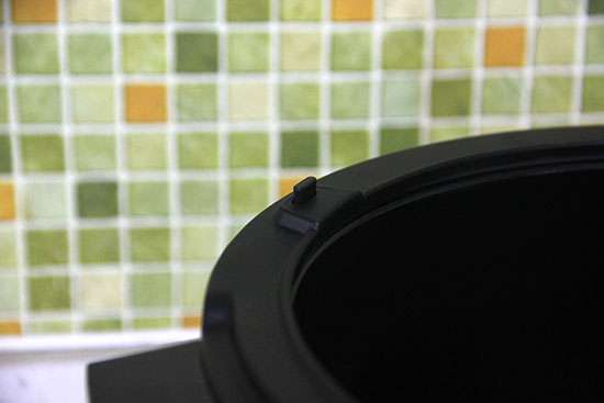 因为机器有两个内胆,不同的内胆会自动识别,然后根据内胆采用不同的煲汤方式,这就要归功于下图这个内胆识别开关,当内胆放进去之后,内胆识别开关被摁下去就能识别出这是钢胆还是陶釜,然后会根据内胆显示炭火煨和隔水炖模式。