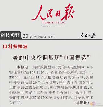 可以说,从跟随模仿到自主创新,美的中央空调在持续领跑国内市场的同时,还实现了对国际市场的弯道超车,成为名副其实地中国制造创新的典范,其能够频频引发人民日报等权威媒体的关注,是一种必然。