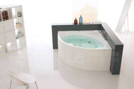 比如悦时尚系列,以大面积白色铺陈,一套A1903休闲浴缸,一把镂空的曲线造型椅子,浅色调的花纹布帘,在柔和的灯光下,营造出耳目一新的视觉感染力,很多年轻家庭既喜欢是时尚,又不能放弃温馨,还要新鲜感,那么这种卫浴间是非常好的选择。