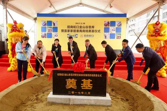 2月28日上午,全球最大家居用品零售商宜家在广州番禺金山谷意库的宜家工地上与招商蛇口共同启动了宜家番禺新项目。宜家番禺商场将是宜家在广东地区的第四家店,预计今年年底或2018年春开业。广州番禺区招商办主任殷团先生、宜家中国零售副总裁 Patrice Dreano 先生、招商蛇口广州公司副总经理赵宇女士等共同出席了奠基仪式。