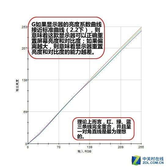 我们对AOC\u00A0Q2781PS曲线测试的意义在于,Gamma(亮度色标)是在视频/图像中用于编码和解码的一个非线性操作的名称,如果显示器的亮度系数曲线接近标准曲线(光度2.2下),则意味着这款显示器可以正确重置屏幕亮度和对比度;如果偏离越大,则意味着显示器重置亮度和对比度的能力越差。