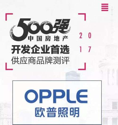自2008年起,中国房地产500强开发商首选供应商品牌测评,连续9年为全行业提供专业测评数据,是中国最权威、影响力最广的行业测评活动。作为中国照明业领军品牌,欧普照明目前排名很好地反应了大众对其专业和实力的认可。