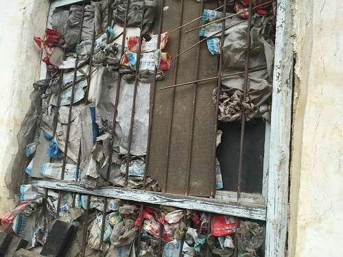 随后,我们又走访了同村的低保户王金娃,我们发现,现如今是旧教室改造的家里,依旧没有一件像样的家具,就连所谓的床也是用旧书桌堆砌而成的,这不禁让人心里一颤。再向门外看去,寒冷的风通过破旧的窗户无情地刮进这黑漆的小屋,加上用塑料袋和包装纸封堵破损的玻璃,让人心感酸楚,痛心不已。