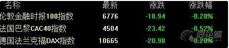 环境,这转化成为较低水平的政策利率。德国DAX 30指数收跌0.20%,本周累跌0.03%。法国CAC 40指数收跌0.52%,本周累涨0.34%。英国富时100指数收跌0.28%,本周累涨0.67%。