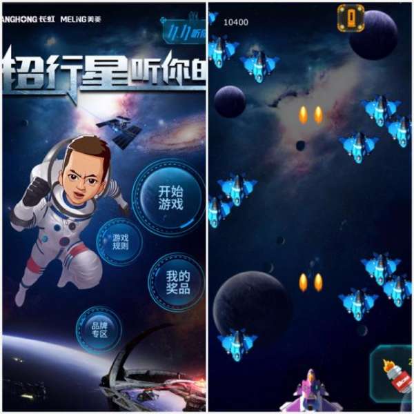 如此斐然的成绩并非一蹴而就,长虹、美菱在双11期间各种精彩纷呈活动就早已引起广泛网友关注。微信上复古情怀满满的“超行星听你的”H5飞机小游戏,击落飞机收集人工智能模块获得积分,再用游戏积分兑换大奖。长虹本是军工产业出生,这款小游戏让我们在回忆童年游戏时也感受到了军工产业的魅力,吸引了数万玩家参与。