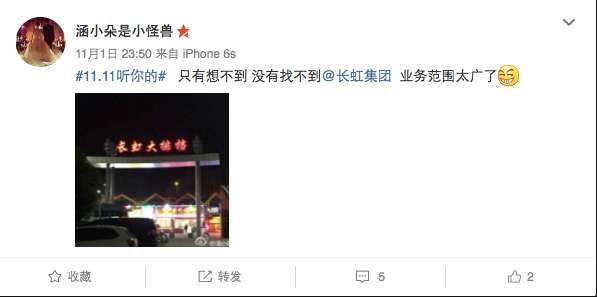 除此之外,微博话题“11.11听你的”让众多网友参与双11活动的互动,长虹、美菱更是大手笔策划一系列活动,正所谓活动不断,豪礼不断,第一波长虹、美菱造句就吸引了大批有才华的网友,有人说“最“长”情的告白是“虹虹”烈烈陪伴在彼此身边,把自己最“美”好的一面“菱”界限的展现给彼此,爱的真谛。”也有人说“我出生于六十年代,从七十年代家里的第一台电视到现在家里三代人一直用长虹。长虹为我们传播家事、国事、天下事,见证了国家几十年的变迁也见证了我家的日子的越来越好,马上搬新家,孩子都说买合资,但是我还是会选择长虹,因为它对我来讲已经超出了一台电视的意义”。