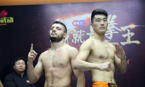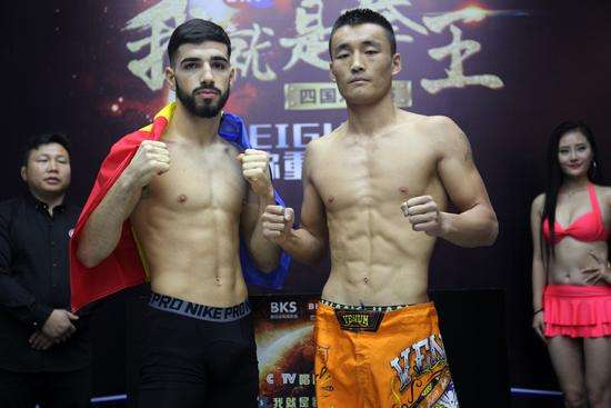 84公斤级选手意大利“斯巴达勇士”阿德曼-马文同样自信满满,全程头颅高昂,甚至还用拳头捶胸来表达势在必得,面对“嚣张”对手,在战无极擂台上已经6战全胜的“塞外豪侠”青格乐显得淡定十足。