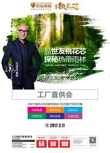 此次活动中,世友桃花芯地板将揭开神秘面纱。桃花心木,浪漫中带有贵族气的桃花瓣颜色,有“木中贵族”的美誉。世友地板匠心所运,系列产品应酿而成,桃花芯已成为成功人士的首选。